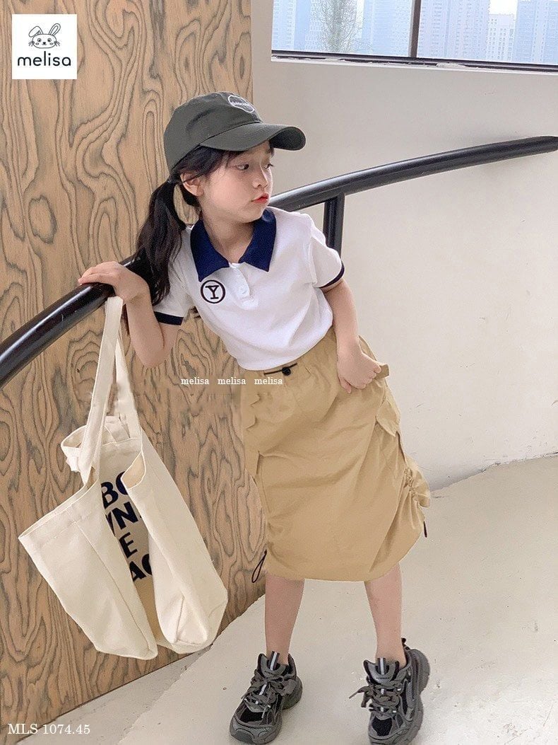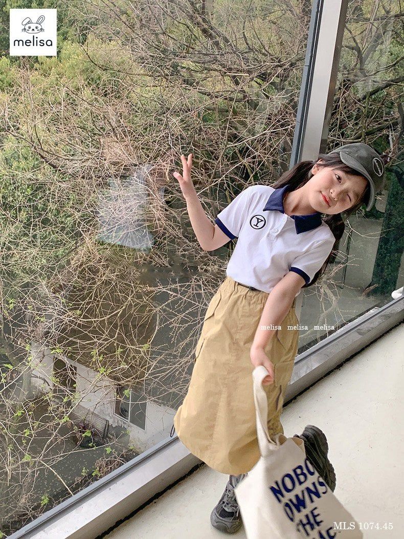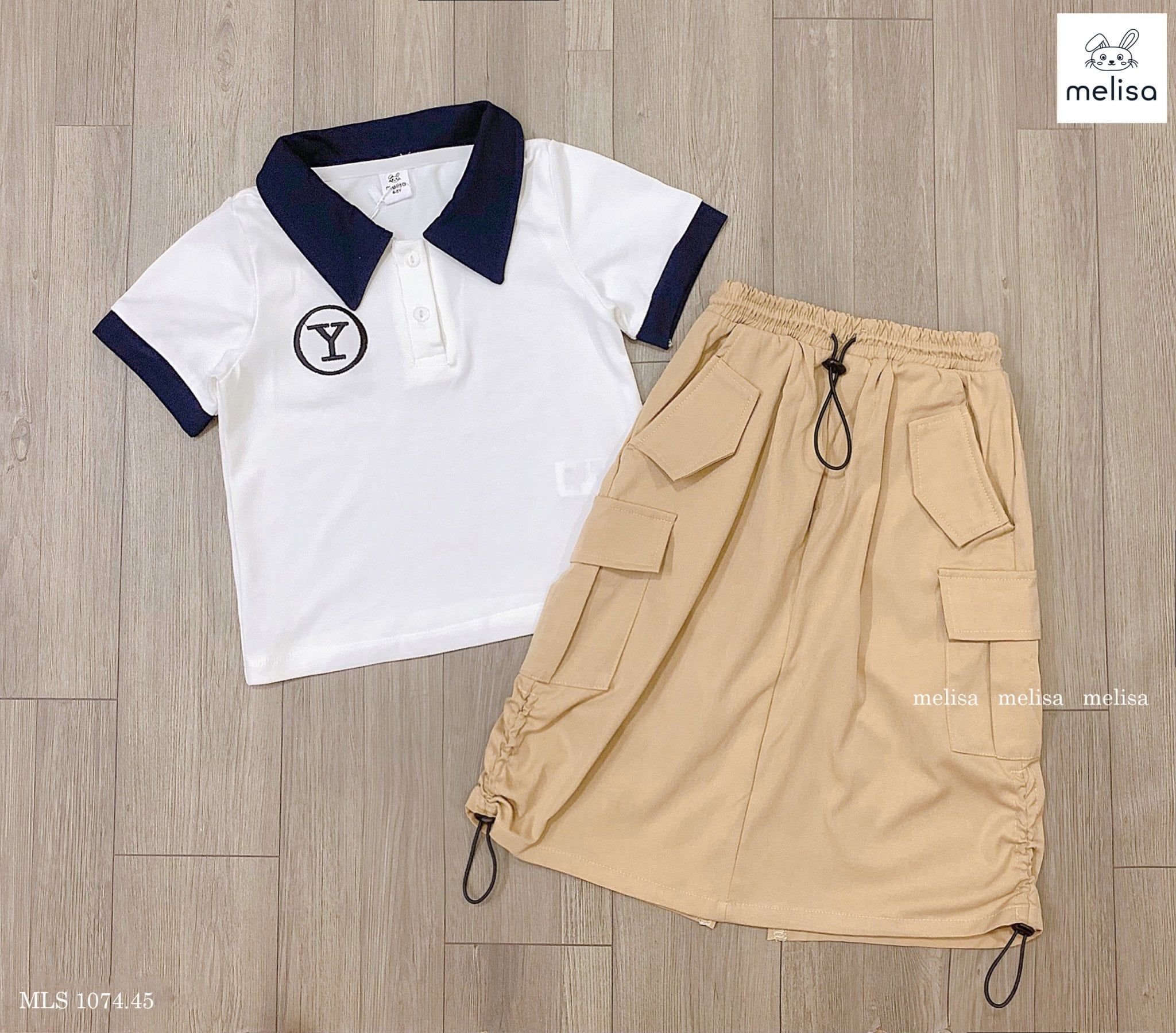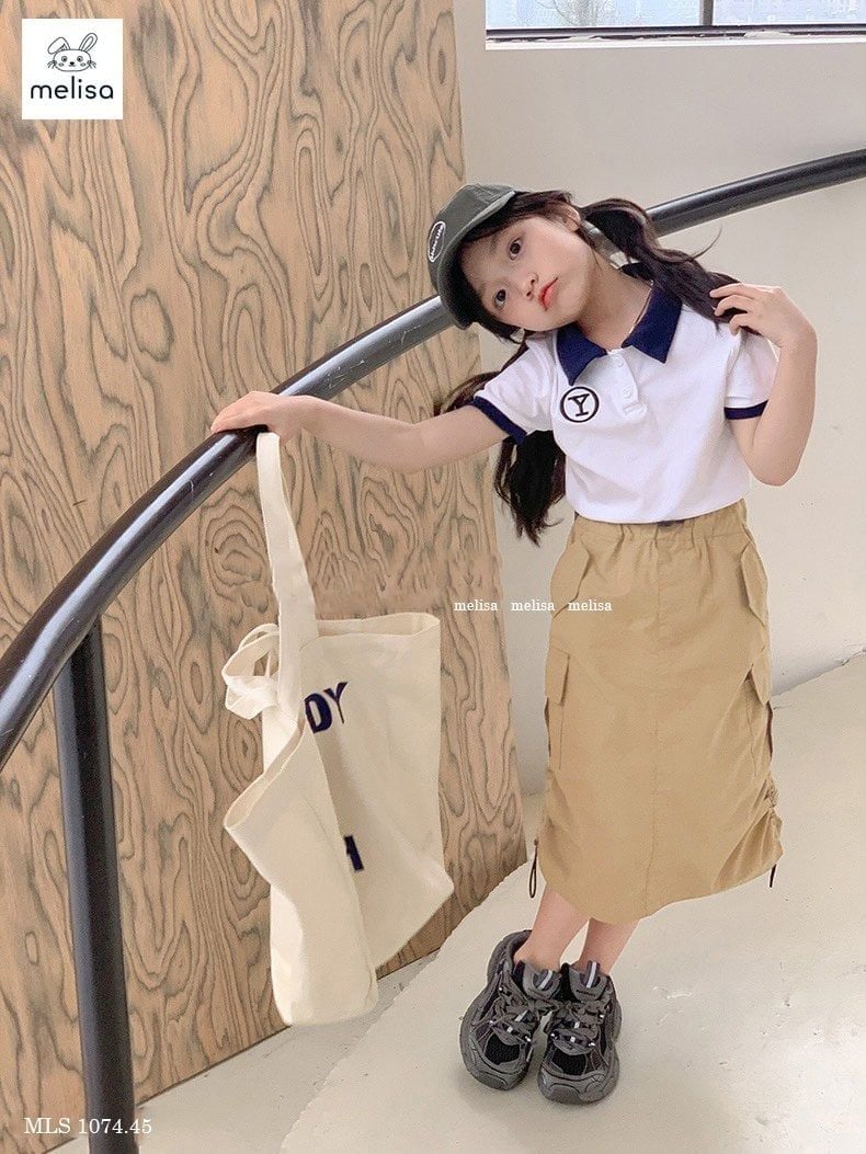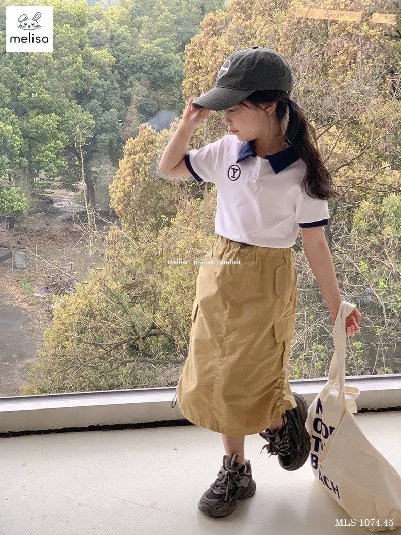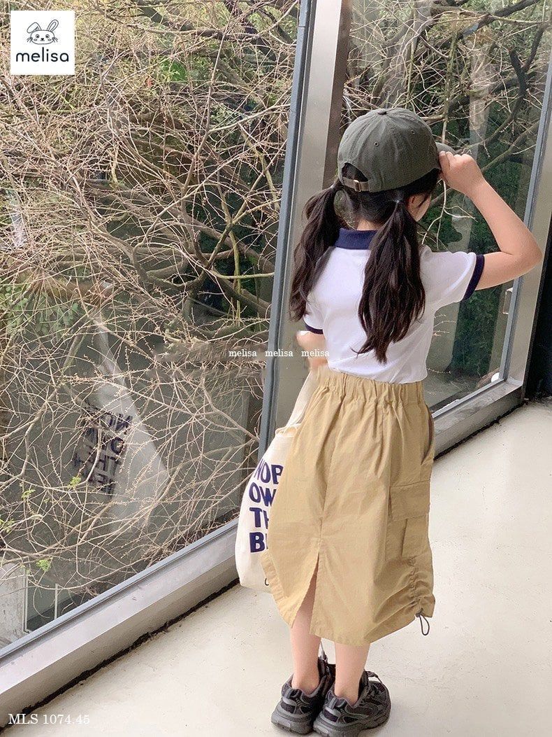 MLS212 - Set Melisa áo trắng cổ đức + chân váy kaki dài túi hộp size 2-12y