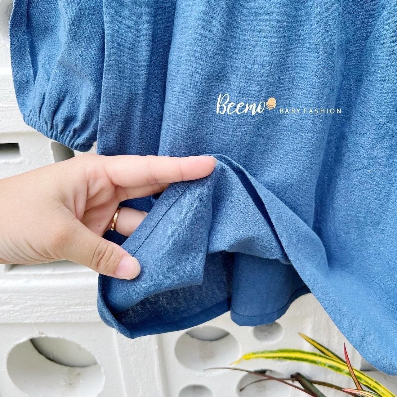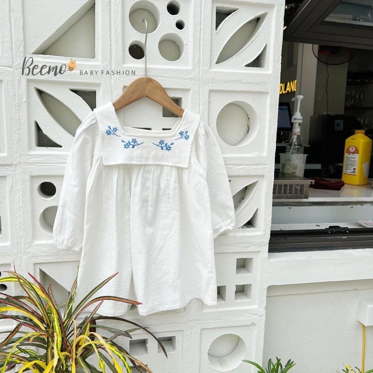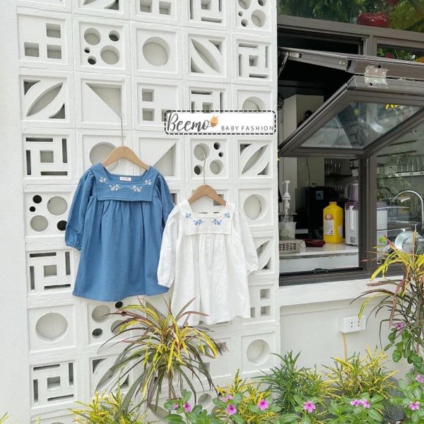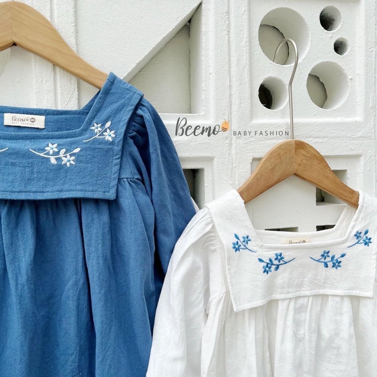 V00131 - Váy đũi dài tay Beemo cổ yếm thêu hoa 2 màu xanh / trắng size 80 -130