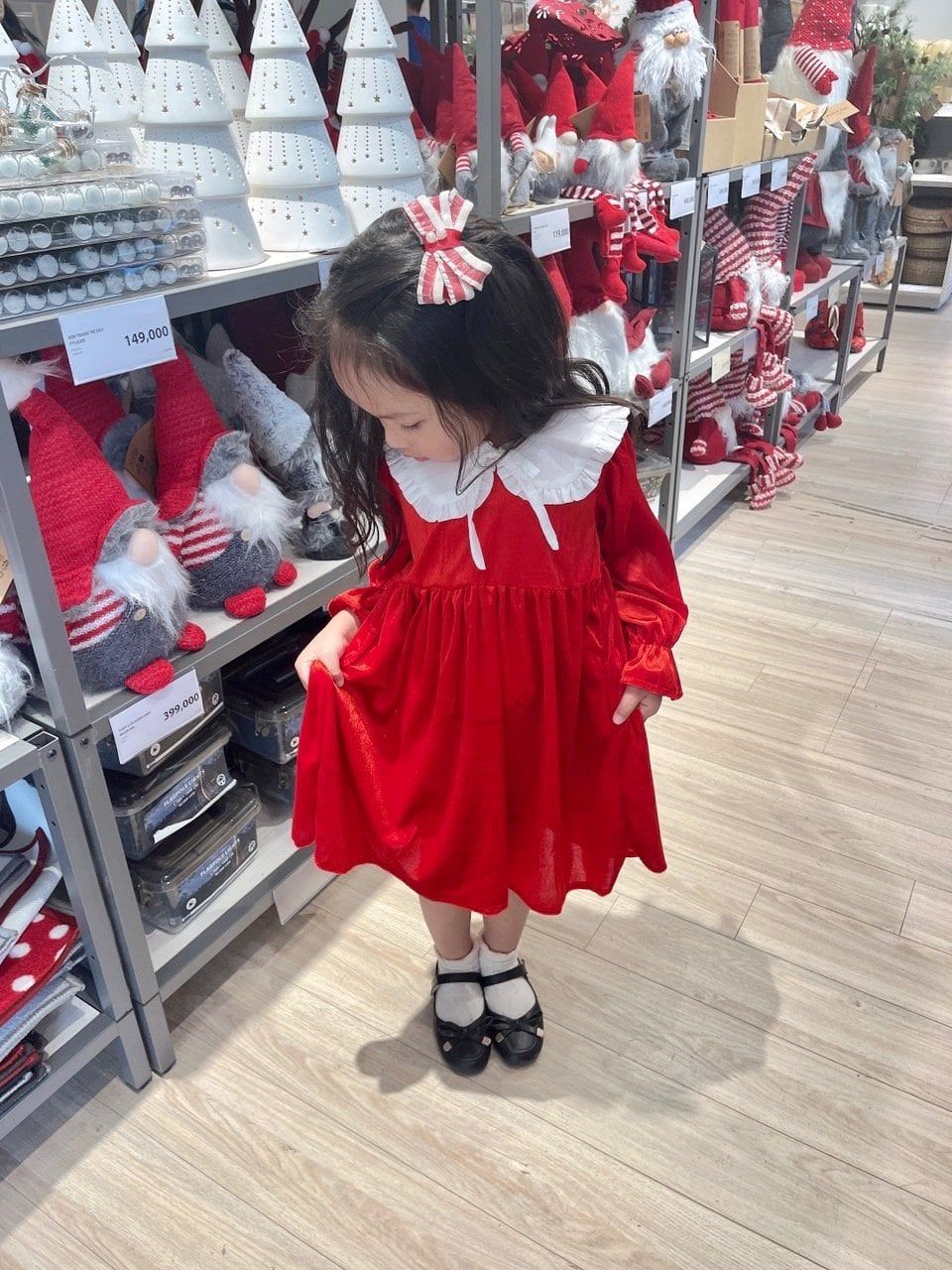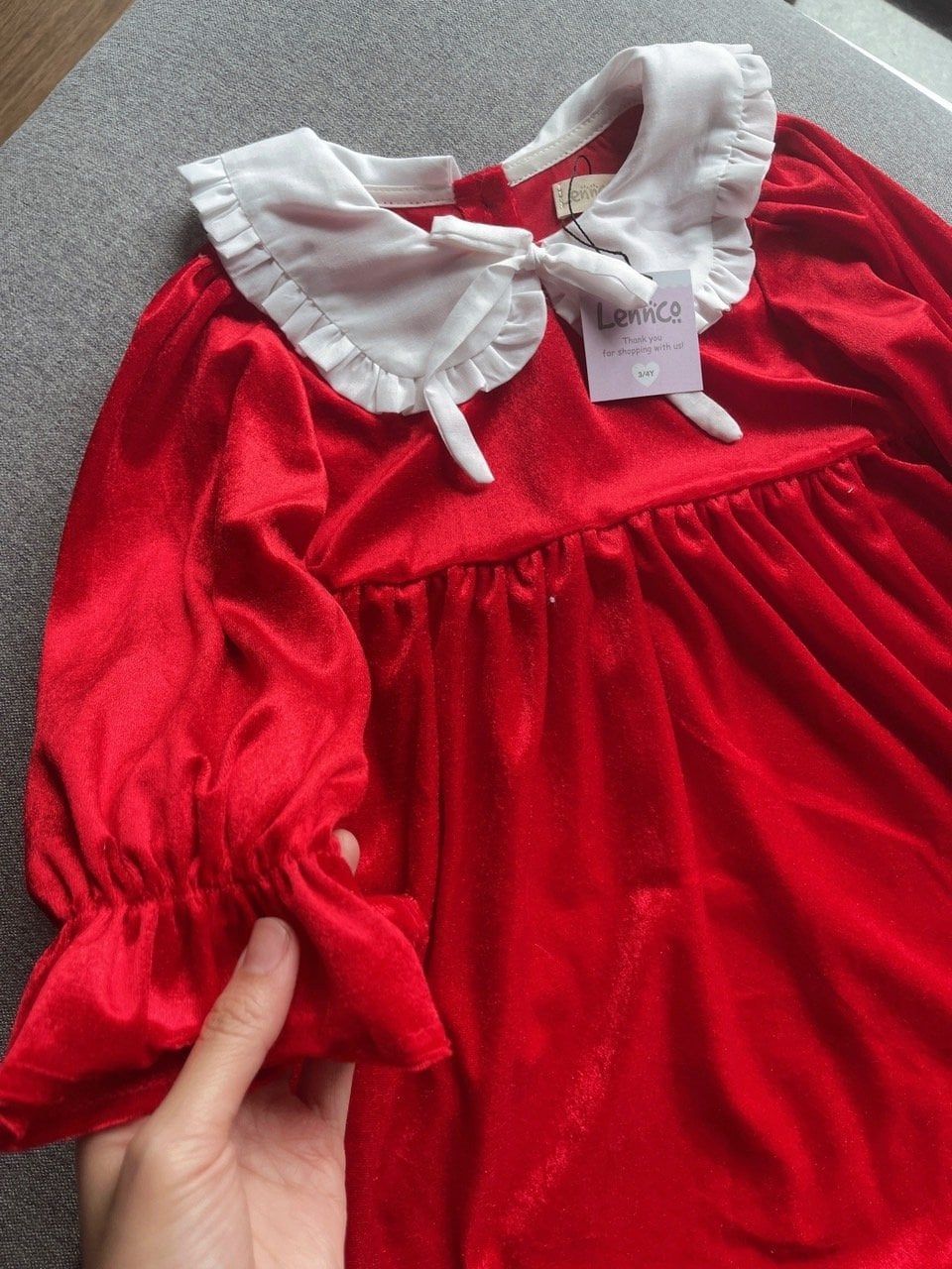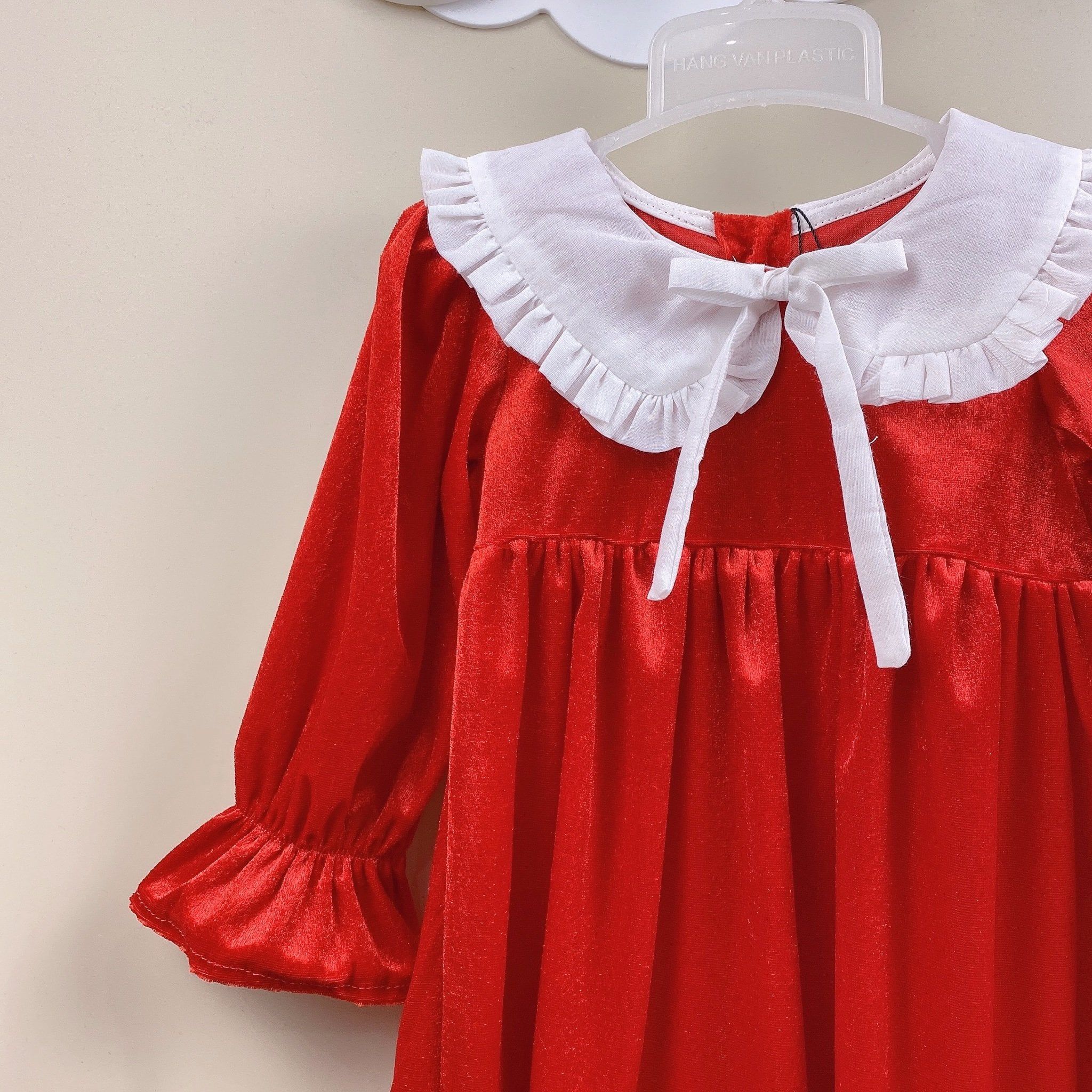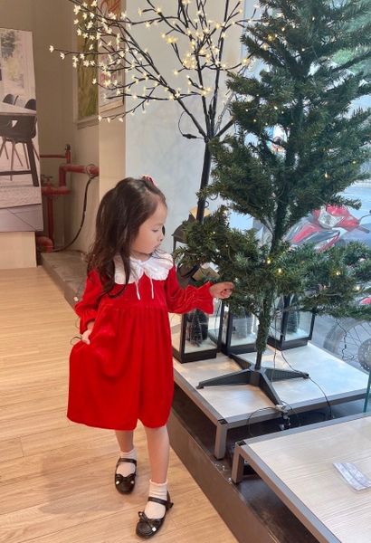 V00119 - Váy nhung đỏ phối cổ sen bèo trắng size 12m - 10y
