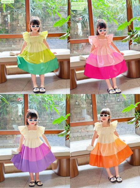 V00046 - Váy Mia Kids tiểu thư smock phối sắc màu BG size 1-10y