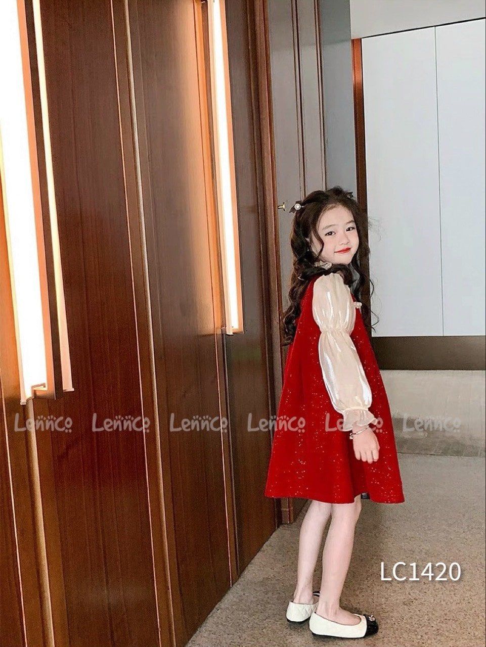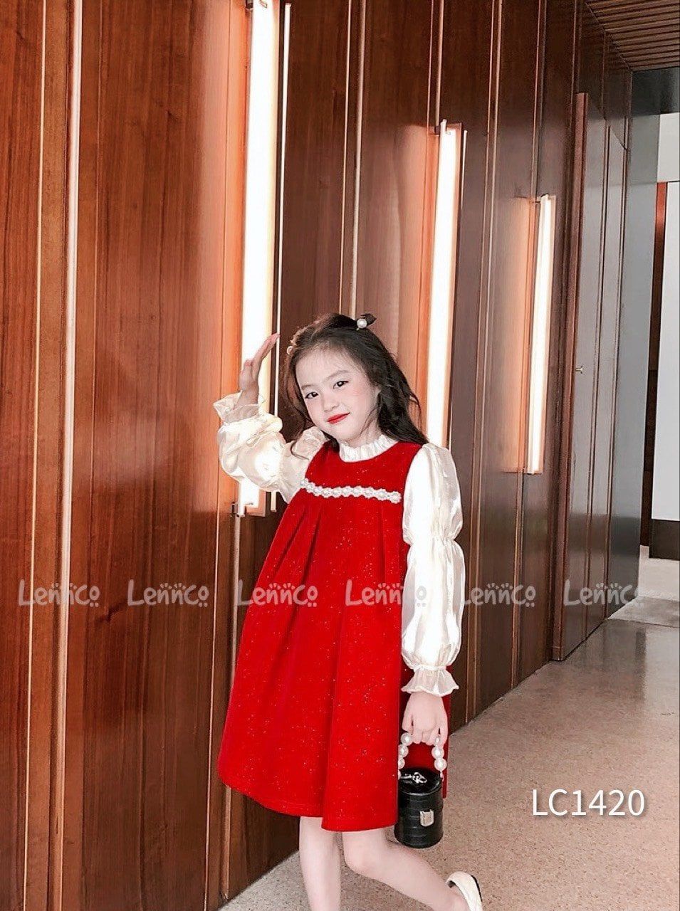 Váy nhung nhũ Lennco màu đỏ diện noel, lễ tết thì đỉnh của đỉnh luôn ạ