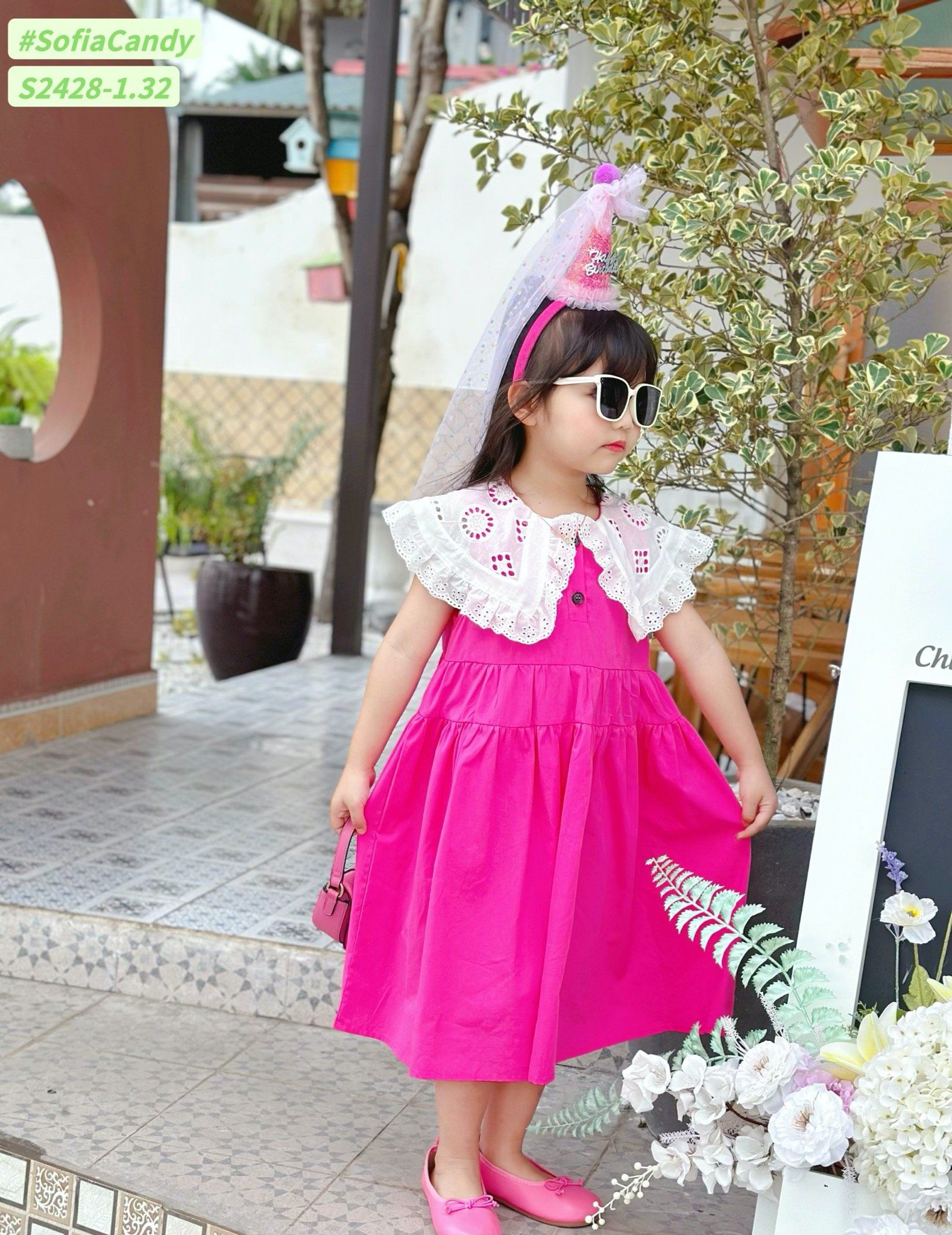 V00034 - Váy Sofia Candy tiểu thư trơn sắc màu phối cổ thêu trắng size 2-12y