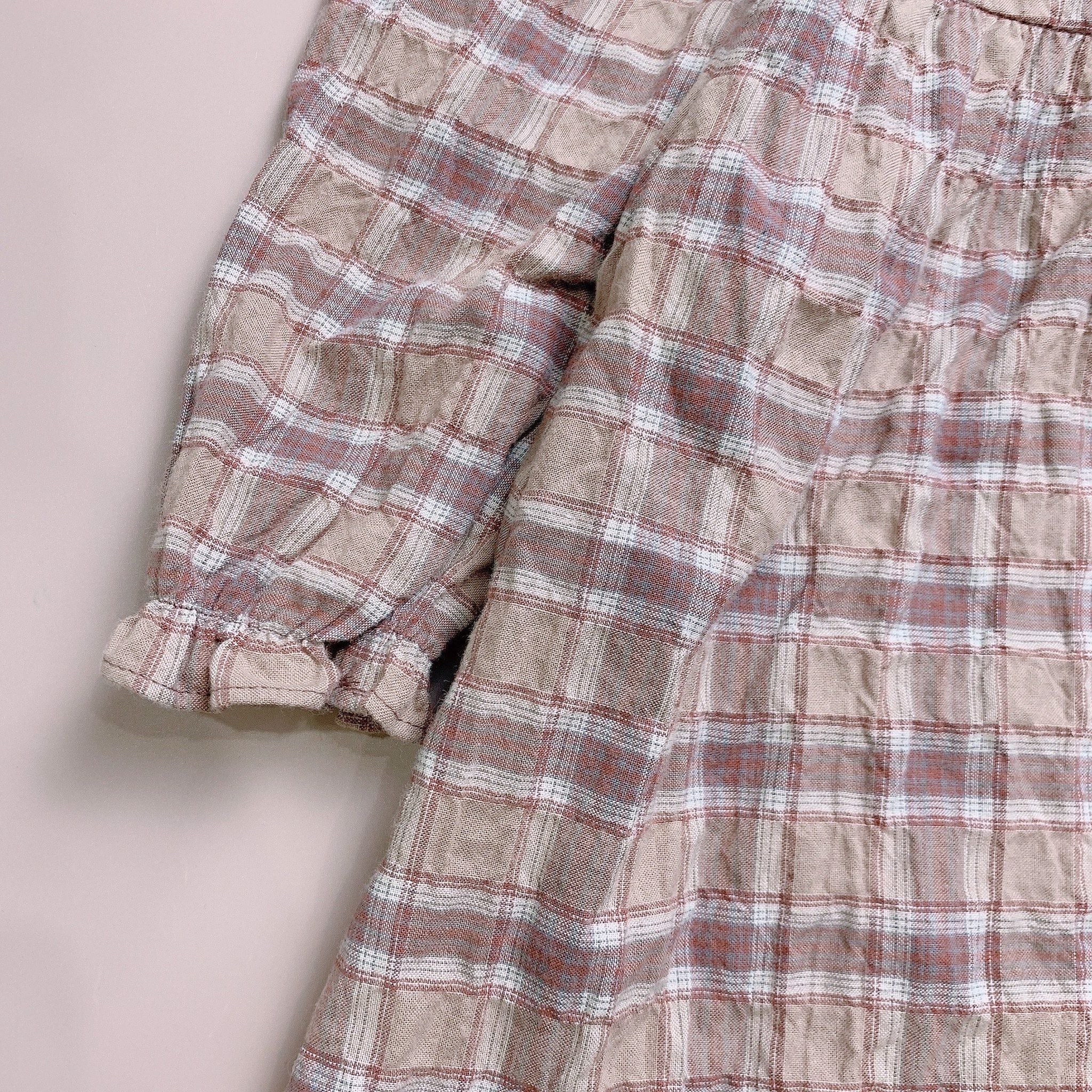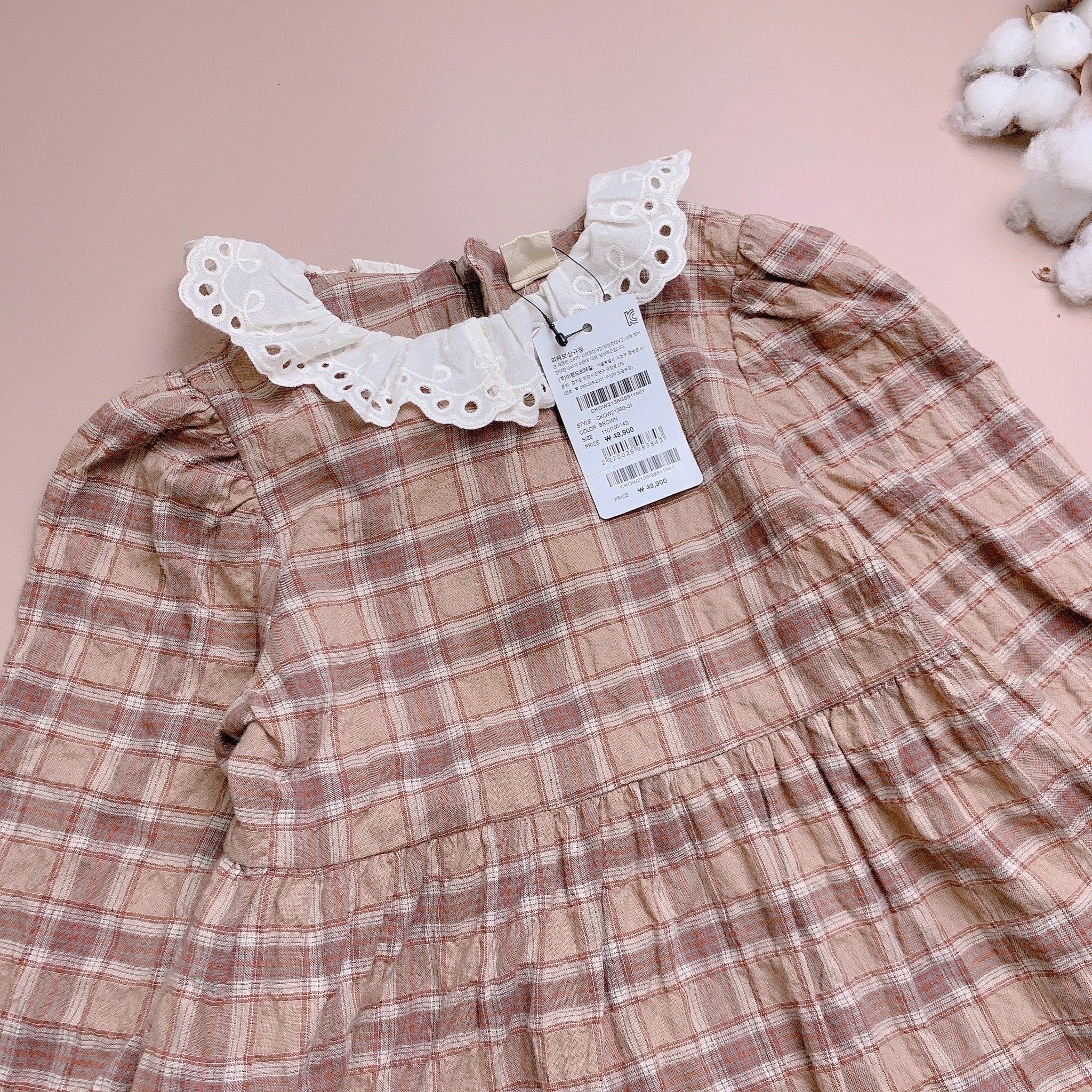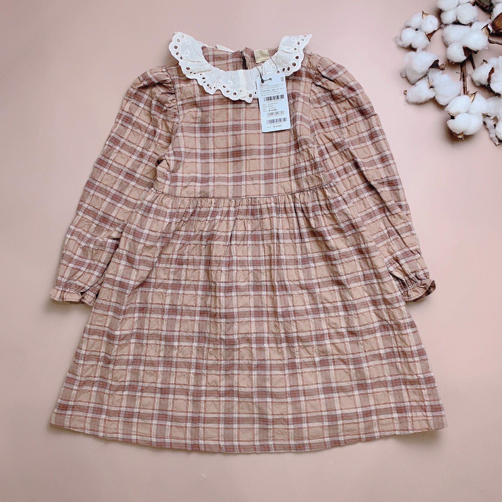 Váy thô Cheek kẻ caro nâu phối cổ bèo ren trắng