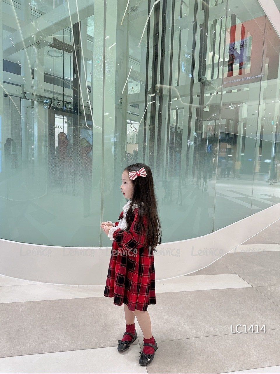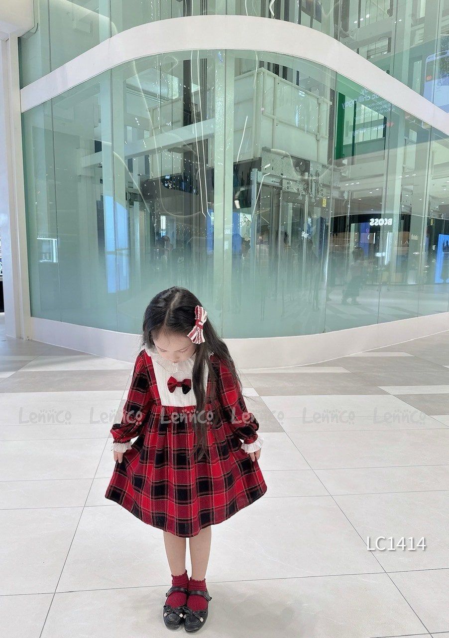 V00089 - Váy thô caro đỏ đen phối cổ trắng đính nơ BG size 1 - 10y