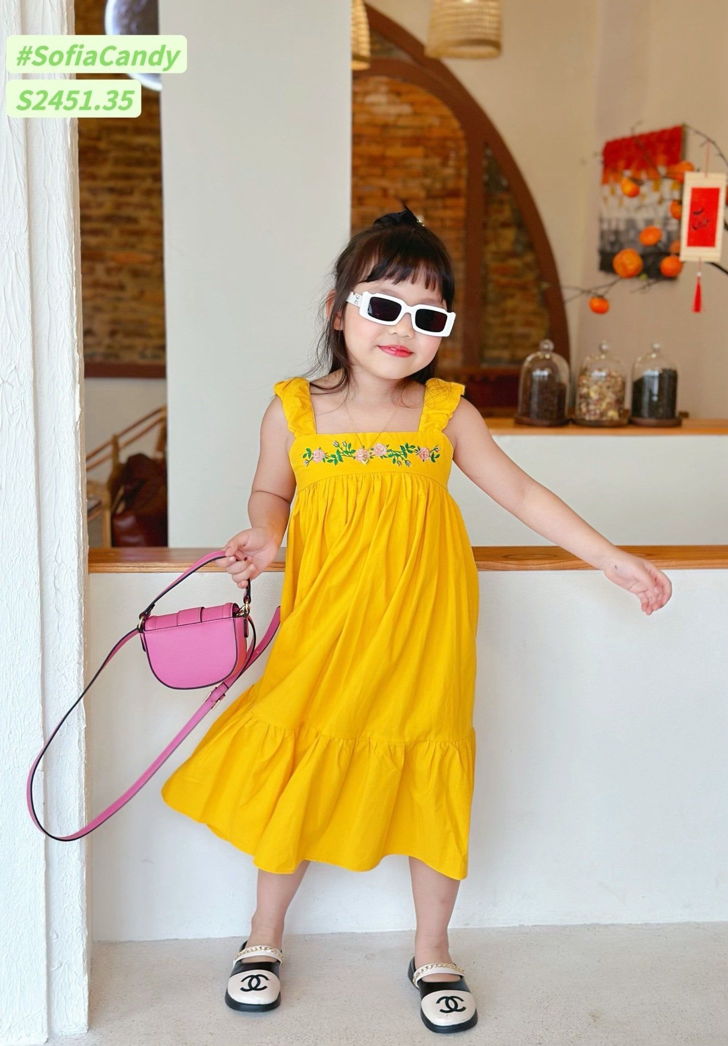 V00022 - Váy thô Sofia Candy hai dây thêu hoa ngực nhiều màu size 1-10y