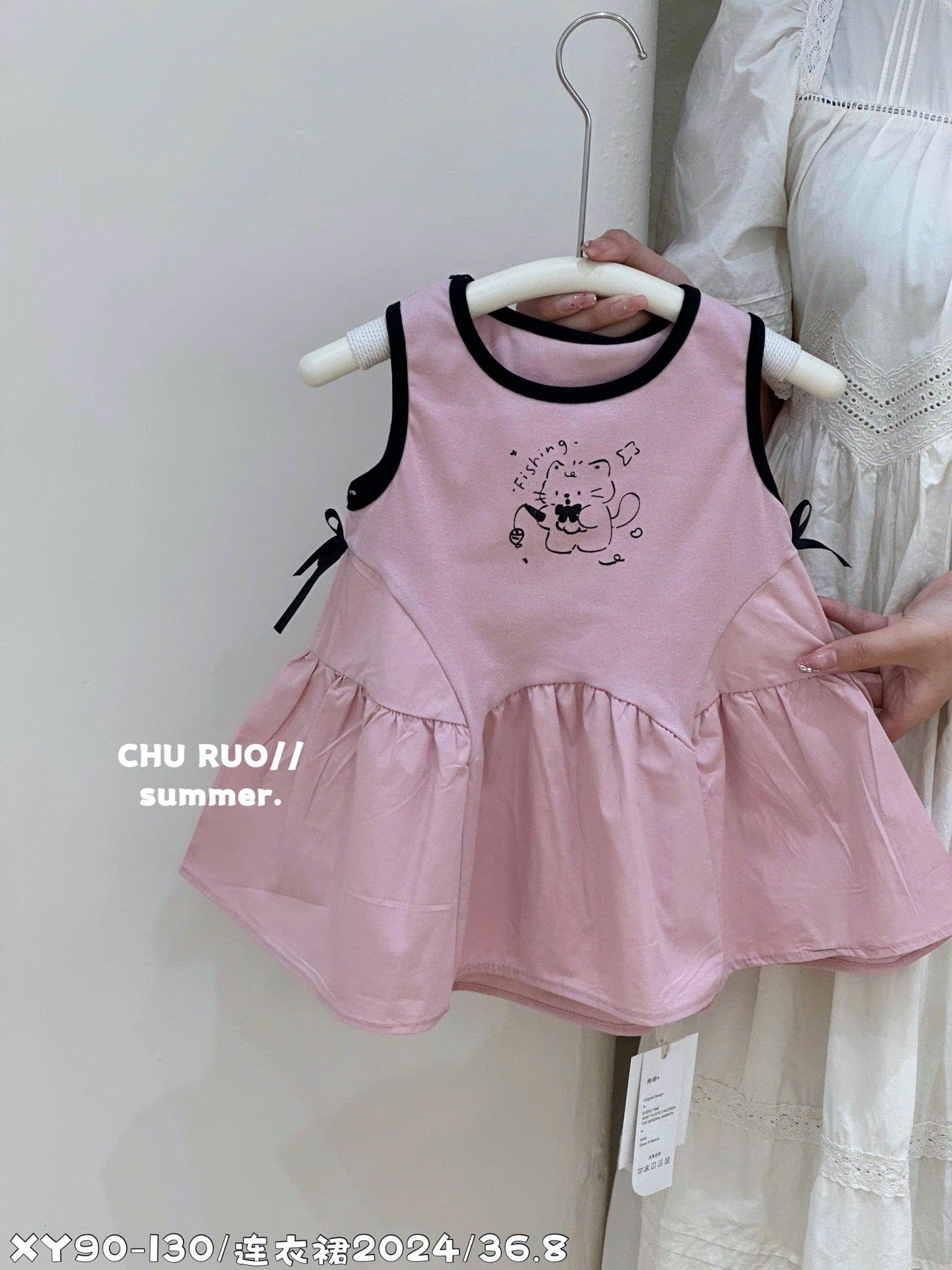 V00016 - Váy Xinyue cotton phối chân kaki in hình mèo 3 màu bé gái size 90-130