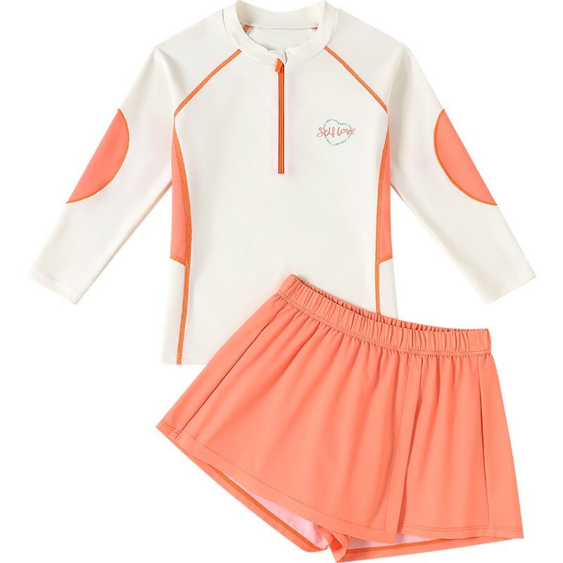 YY7520 - Bộ bơi YUKE dài tay chống nắng màu kem phối cam bé gái size XL-6XL